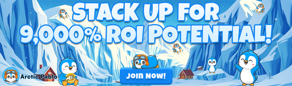 Early investors in Arctic Pablo Coin can expect an ROI potential of over 9,084.48%, with a $100 investment turning into over $9,000 once the token lists at its launch price.