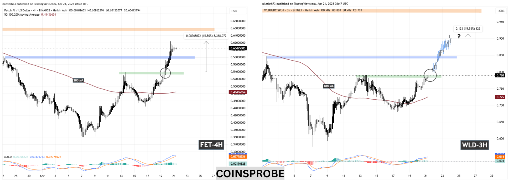 Meanwhile, Worldcoin (WLD) — a project aiming to build a global identity and finance network — is flashing a very similar setup to FET’s recent breakout, suggesting that a short-term rally could be just around the corner.