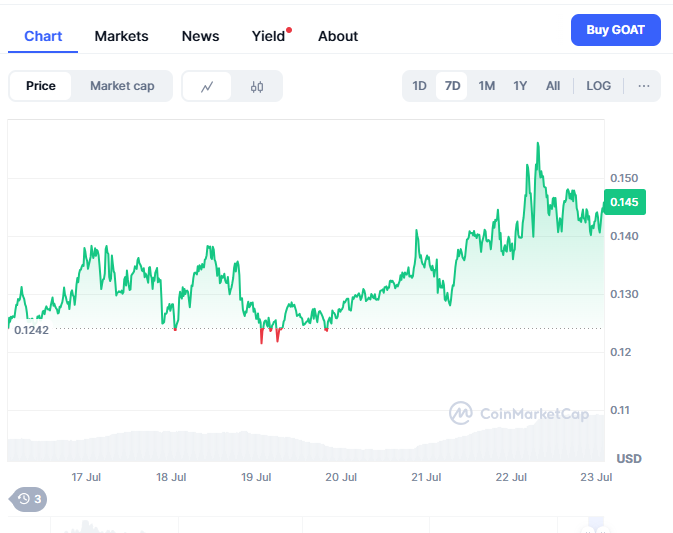 The current price of Goatseus Maximus Coin stands at $0.144745, backed by a 24-hour trading volume of over $83.5 million and a market cap of $144.7 million. It’s no small feat. Over the past 7 days, the coin has climbed 16.7%, grabbing attention like a goat on a trampoline. While short-term momentum appears strong, analysts are divided on whether this bullish trend has legs or if a cooldown is on the horizon.