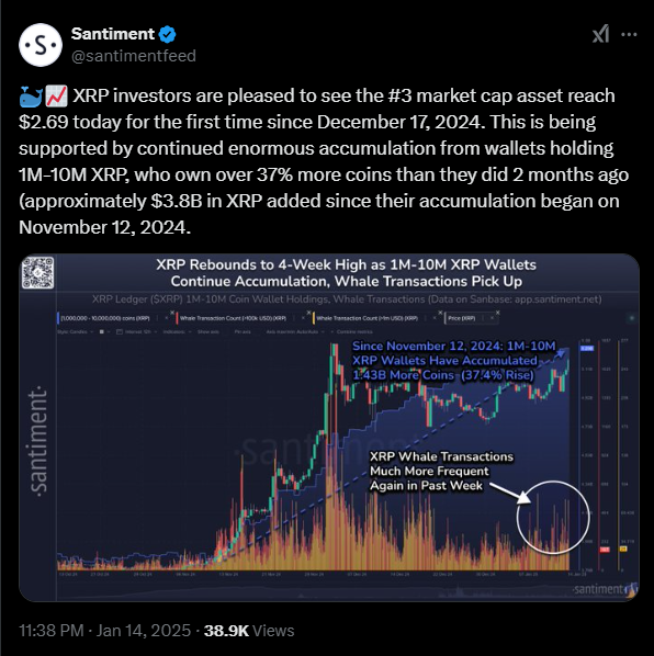 Bolstering the speculation, the crypto analytics firm Sentiment reported on X that major XRP holders had increased their stakes by 37% in just two months, significantly enhancing the prospects of an ETF launch this year. Moreover, with SEC Chair Gary Gensler anticipated to step down soon, the regulatory path may be clear for XRP to break its longstanding price resistance.