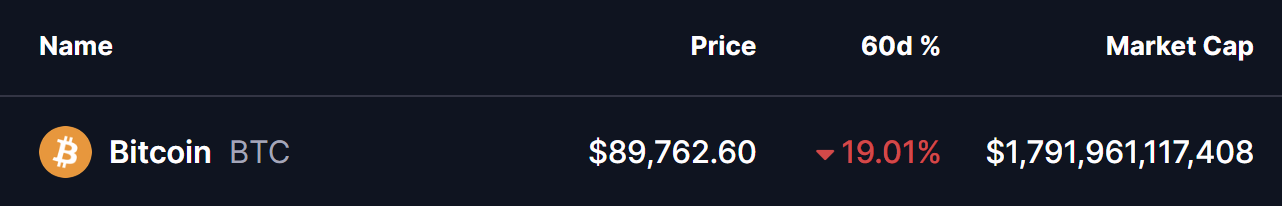 The broader cryptocurrency market has been experiencing choppy price action over the past several weeks, a phase that began after the sharp sell-off on October 10. That correction dragged Bitcoin (BTC) from sub-$120,000 levels down toward the current $88,000 zone. Over the last 60 days alone, BTC has declined by 19%, keeping overall market sentiment cautious and risk appetite subdued.