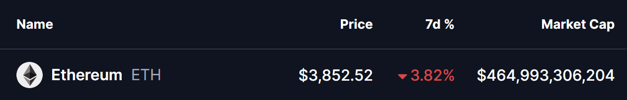 The broader cryptocurrency market remains in choppy momentum following the historic $19 billion liquidation event on October 10, which was triggered by escalating tariff tensions. The sell-off dragged Ethereum (ETH) from around $4,300 to a low of $3,404, before bouncing back to its current price near $3,850, still reflecting a 3.82% weekly decline.
