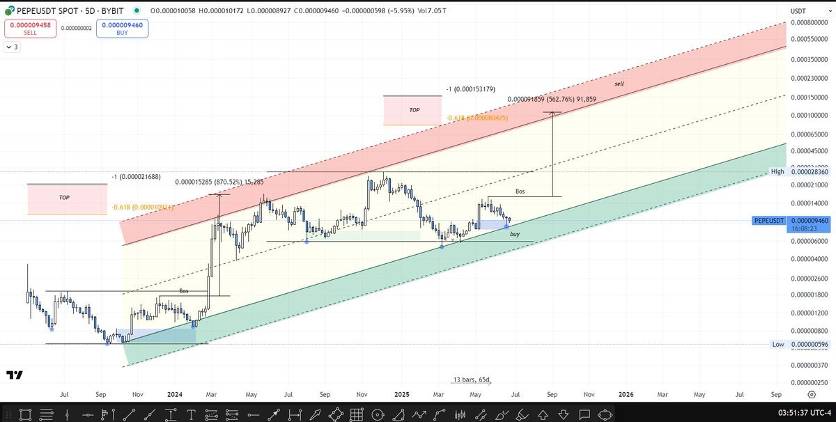 However, if PEPE slips below the buy zone and fails to defend the lower green boundary of the ascending channel, the fractal setup could be invalidated, potentially leading to further downside or a longer period of consolidation before the next major move.