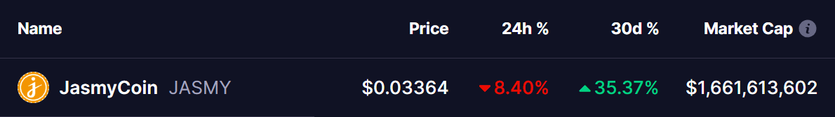 However, despite the recent dip, technical analysis points to a bullish outlook for JasmyCoin.
