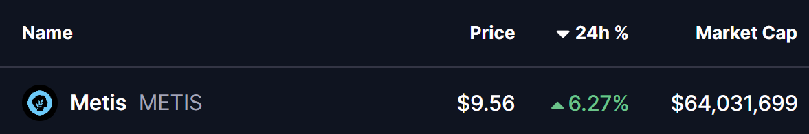 In its latest pullback, METIS found strong support near $8.47, which coincided with the wedge’s lower boundary. Buyers stepped in at that level, helping the token stage a solid rebound to around $9.56, where it currently trades just below the upper wedge resistance line.