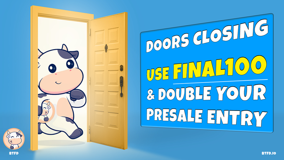 Use the code FINAL100 when buying from the BTFD presale site. You’ll instantly receive 2x the tokens.