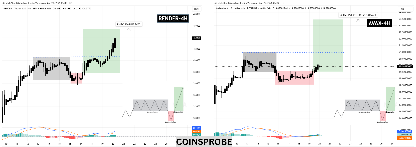 Both RENDER and AVAX are flashing classic accumulation to expansion setups, often loved by smart money traders. Short-term opportunities look exciting for both tokens, but in these volatile markets, having a solid risk management plan is absolutely crucial.